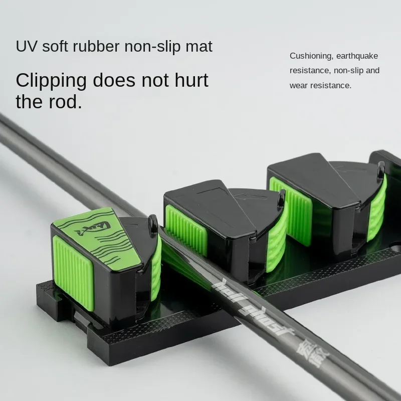 This wall mounted rod holder provides a clean and organized way to store fishing rods vertically. It features a three-hole design that securely holds multiple rods in place. The modular design allows splicing to expand storage as needed. Strong adhesive backing enables easy installation without drilling. It can also be mounted with screws for added stability if desired. The holder keeps rods separated to prevent tangling and damage. It works well for garages, sheds, boats, or indoor storage areas. Durable materials ensure long-term use and reliable support. The compact design saves space while keeping rods easily accessible. This rod holder is a practical solution for neat and efficient fishing rod storage.